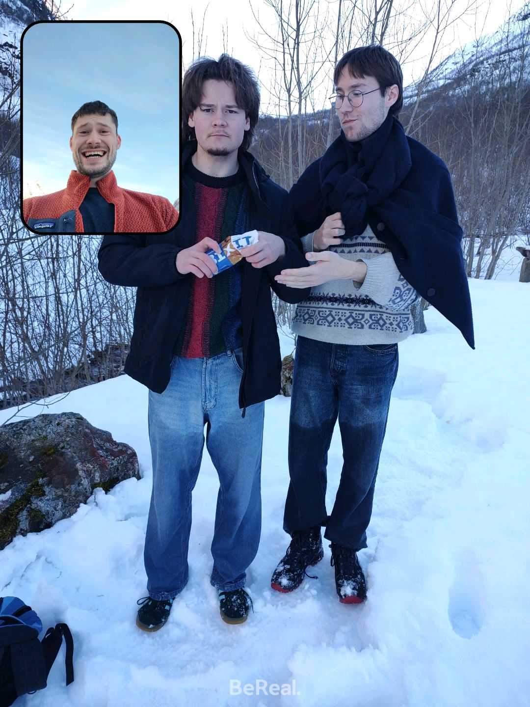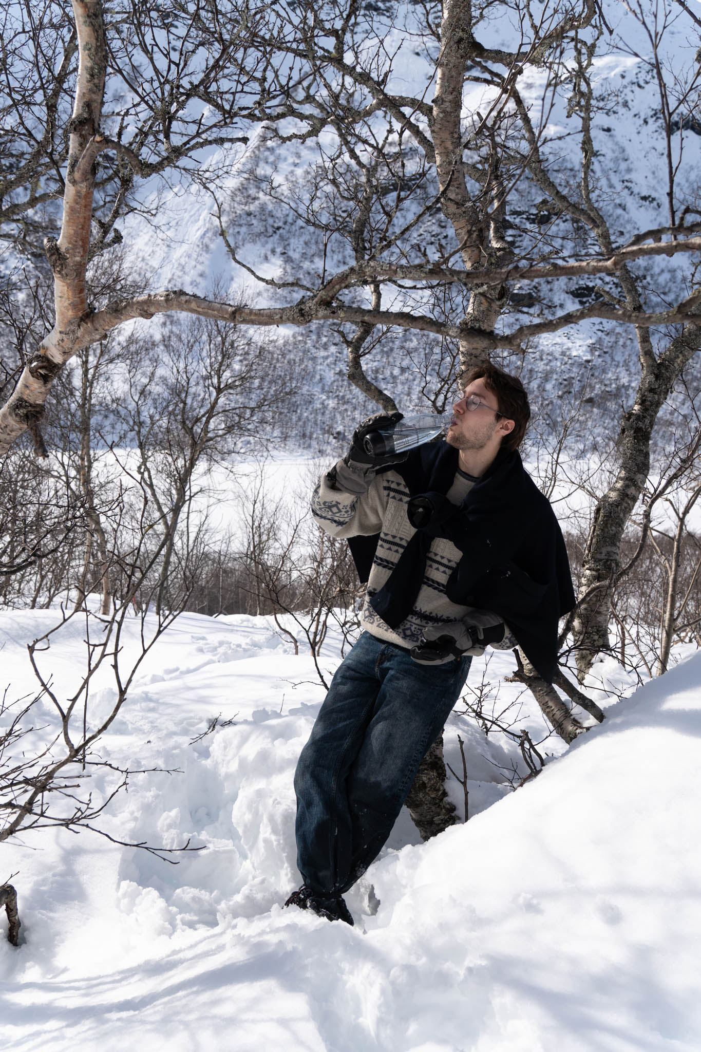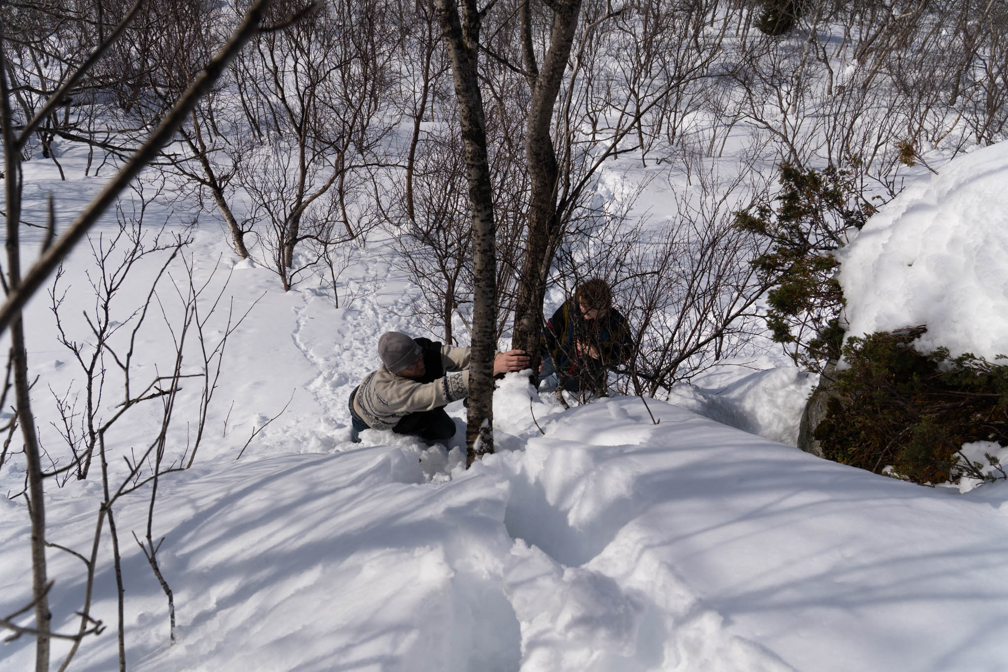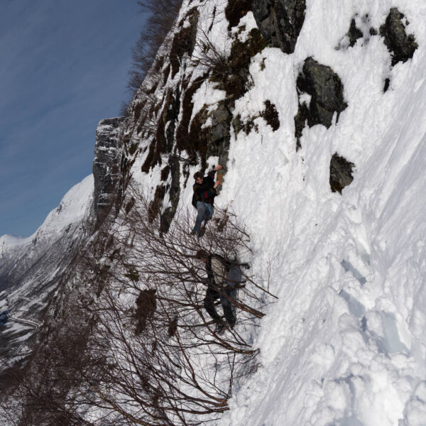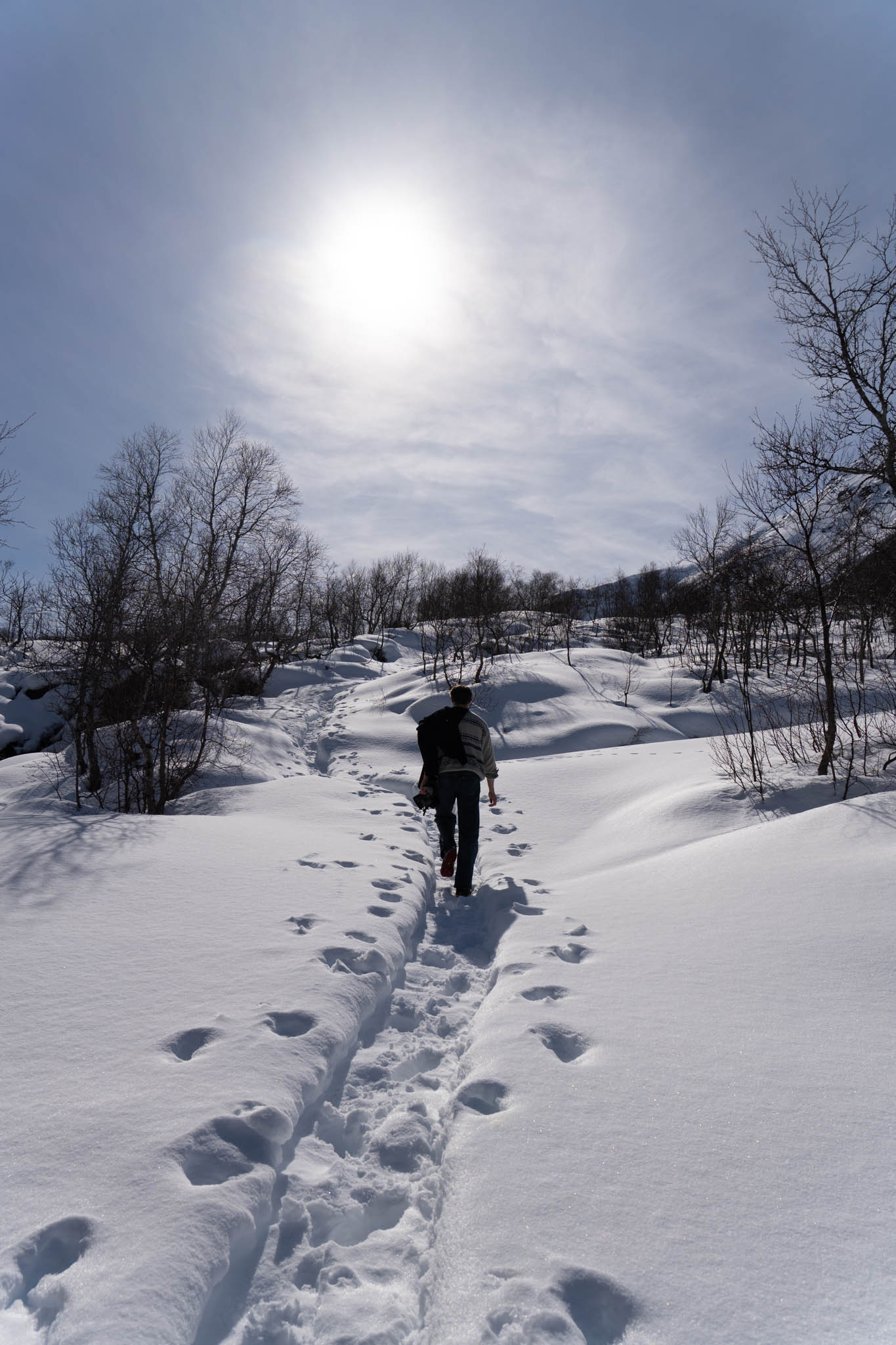 Also bin ich (als einziger nicht in Jeans) vorgegangen und habe einen „Weg“ für meine Brüder geformt. Da wir keinen anderen Weg finden konnten sind, wir einfach querfeldein gegangen. Voran kamen wir aber nur seeehr langsam. Der Schnee ging die meiste Zeit bis zur Hüfte und jeder Schritt war ein richtiger Akt (zum Teil war es so Steil, das Tim mich von hinten „hochschieben“ musste). Und so haben wir uns dann auch mehr von Baum zu Baum gehangeld als zu wandern.