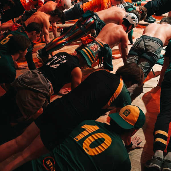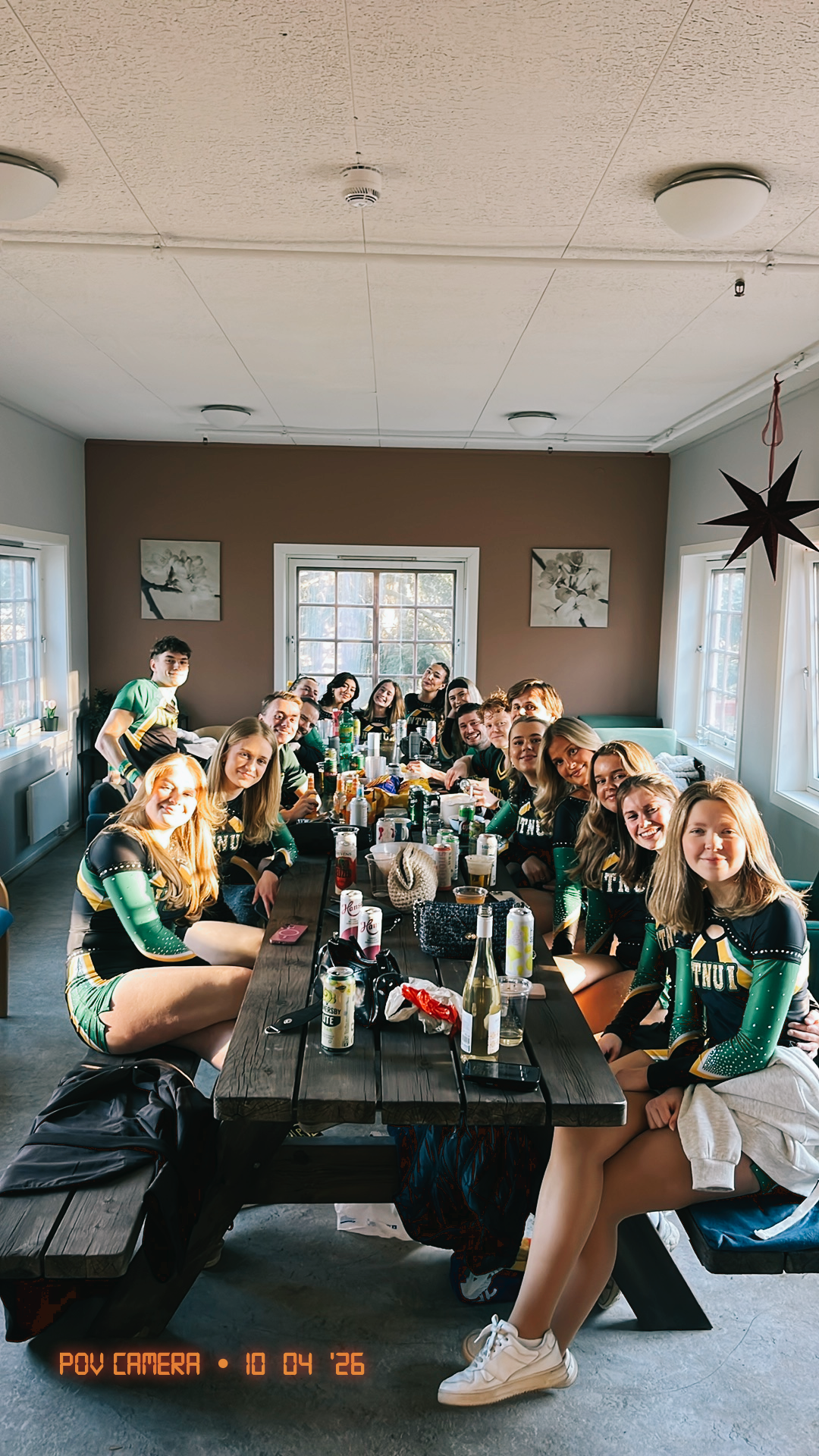 Am Freitagabend stand die riesen Party vom Hochschulsport der NTNU an! Alle waren in den Farben der NTNU gekleidet (meist im Outfit des Teams, die Schwimmer zum Teil in Bikini/Schlüpper haha).