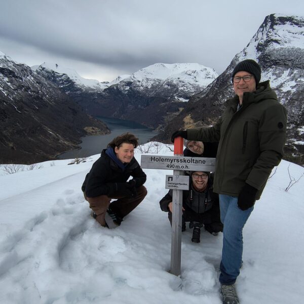 Obwohl der Startpunkt nur 10 Autominuten entfernt war, waren wir auf einmal im Schneeparadies (in Hellesylt war alles grün!).