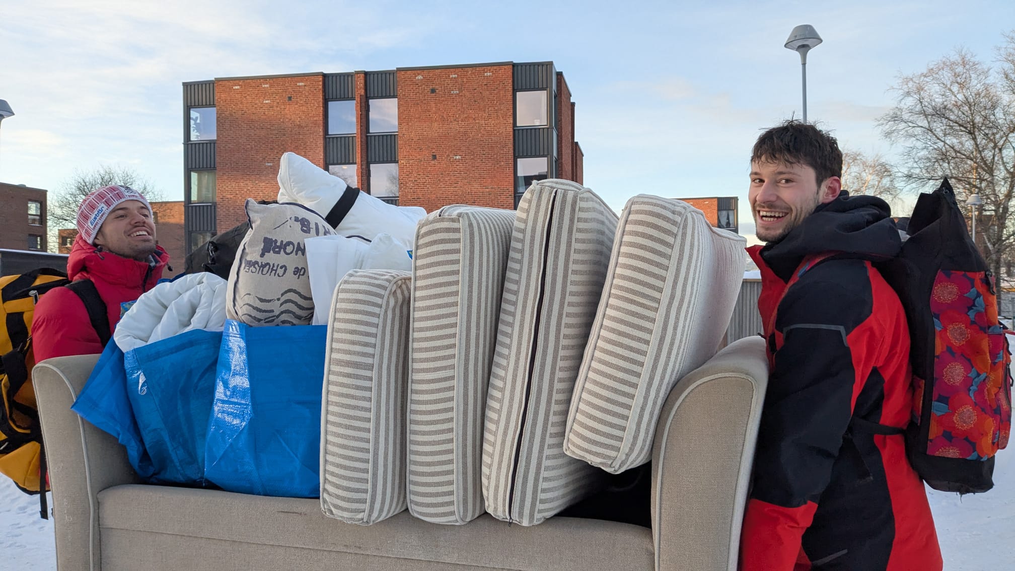 Da viele Wohnungen in Trondheim leer vermietet werden bietet ein kleiner „Laden“ (Restore) kostenlos jede Menge verschiedene kostenlose Einrichtungsgegenstände an, die dort gespendet wurden (typischerweise von ausziehenden Erasmustudenten). Ich und meine 2 Mitbewohner Matthias und Annika hatten alle einen Slot zugelost bekommen und so konnten wir unsere Küche gut aufwerten! Unter der Woche hatten wir im kleinen Austellhüttchen schon Teller, Besteck und Gläser kriegen können, jedoch haben wir nun auch eine gute Pfanne, Töpfe, einen Wasserkocher, einen Toaster und eine Couch!! Für mich ist auch noch eine 2. Decke, eine Schreibtischlampe, ein Teppich und ein Kissen rumgesprungen.